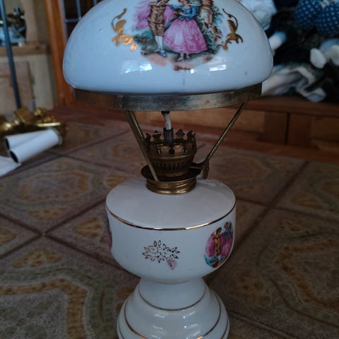 Retro lampe, ligner en gammel olielampe, men med fatning til en el pære.