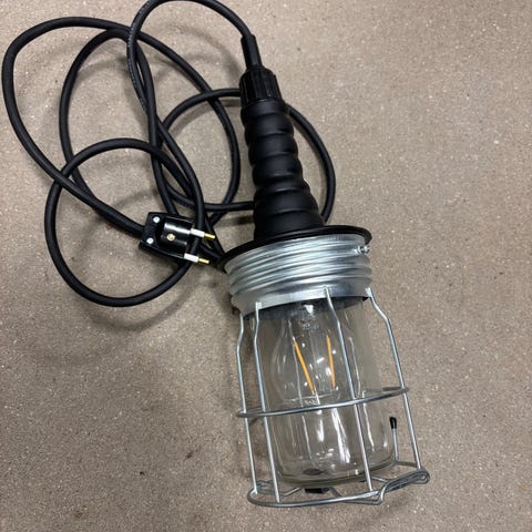 Hygge belysning, kan hænge i et hjørne. Med afbryder ved lampen.