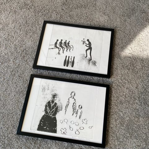Vintage Sarah Kay Tegning i ramme (str. 32,5x25,5 cm)