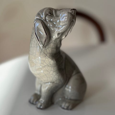 Lille interaktiv plysdyr i form af hund / hvalp fra FurReal / Hasbro. Den er 11,5 cm lang og er lavet af en blød, beige plysmateriale. Den har detaljer som ører og hale, og et lille sort næse. Velegnet som legetøj eller dekoration.