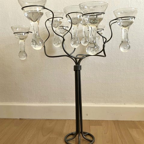 Gulvstage til kuglelys, Stor lysestage med kuglelys, kan stå udendørs. Højde 80 cm. (1427)