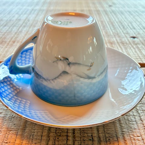 Mågestel Kaffekop med underkop fra B&G (str. 6,5x9,5&ø14 cm)