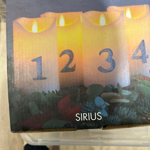 Dette er et dekorativt vokslys med dimensionerne 10x7,5 cm. Lyset har en hvid farve med et glitrende gråt motiv af grantræer rundt omkring. Det ligner et LED-lys, hvor den øverste del er lavet af voks for at simulere et brændende lys. Ideelt til skabe stemning og hygge.