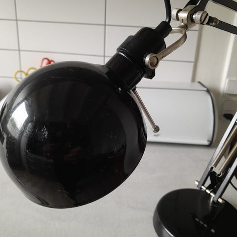 Står godt på bordet, da de vejer lidt, metalarmen er flexibel, så den kan drejes i alle retninger.