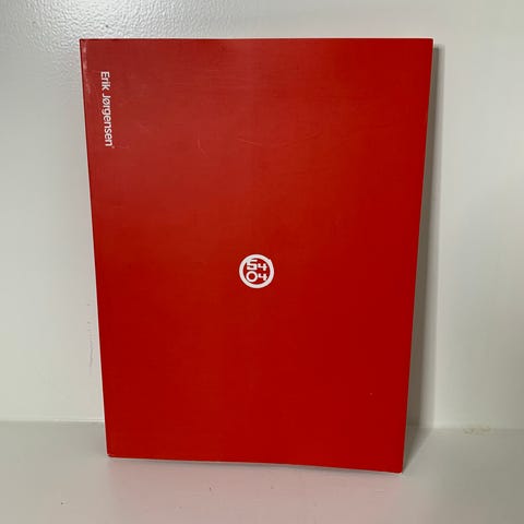 Indbunden bog med den danske møbeldesigner Erik Jørgensen. Smudsomslag er falmet på ryggen.