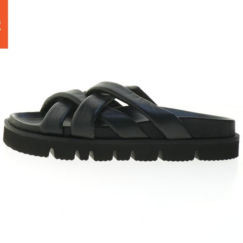 Dette er et par sorte sandaler fra mærket Phenumb Copenhagen. Sandalerne har en størrelse 41 og er designet med bredde remme, der krydser hinanden. Sålerne er robuste med tydelige slidmønstre for ekstra greb. Phenumb logoet er synligt på indersiden af sålen.