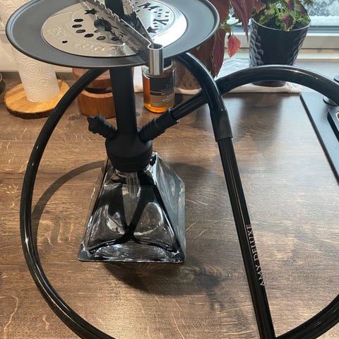 Brugt en håndfuld gange og passet meget godt på. Der er kun røget nikotin og tjære fri tobak på den. Sættet er pakket i oprindelig kasse og har været opbevaret i den når der ikke har været røget på den.