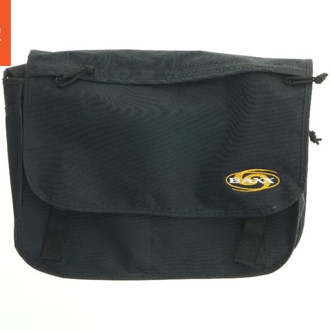 Sort Basx taske med aflåselig klap. Tasken har et enkelt design med en lynlåslukning på bagsiden og små rems-detaljer foran. Den har en størrelse på 40x31 cm, passende til let transport og opbevaring af personlige ejendele.