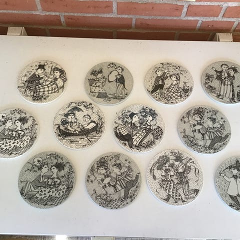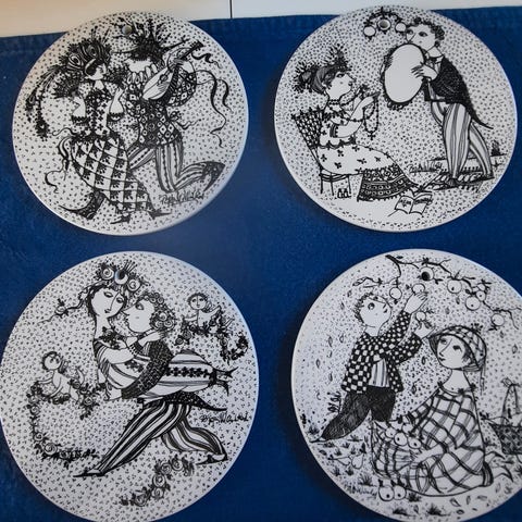 Fajance, platter, bjørnwiinblad, de 4 årstider. 27 cm fejlfri. Pris samlet