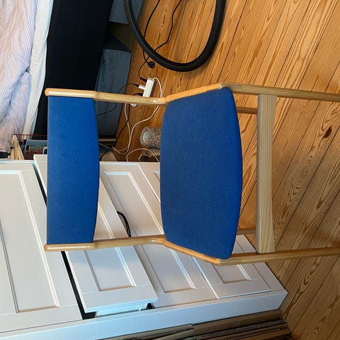 2 stk Erik Buck designer spisebordsstole i bøgetræ for Odense Maskinsnedkeri / O.D. Møbler sælges. De har været malet sorte, men er blevet slebet. Det er muligt enten at slibe dem yderligere, bejdse dem eller male dem. Derfor den lave pris. Jeg har også flere stykker møbelbetræk fra Kvadrat, der kan medkøbes ved interesse.
