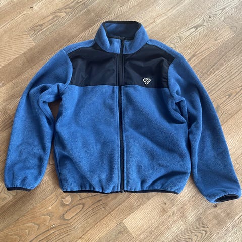 Hummel fleecejakke i blå farve, størrelse 140 til drenge. Jakken er fremstillet af polyester og har en lynlås samt en brystlomme med logo.