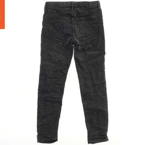 Et par sortfarvede jeans med lommer foran og bagpå. Bukserne har knaplukning og bæltestropper.
