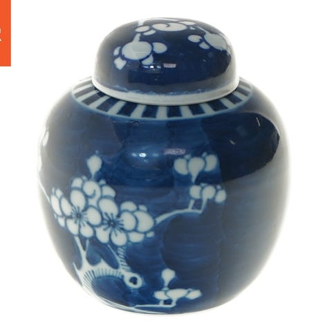 Gammel kinesisk ingefærkrukke med låg (højde 11,5 cm)