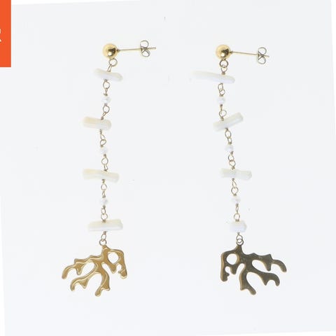 Øreringene er formet som ringe med hvide perler monteret på en guldfarvet ramme. De har en stilren og elegant udtryk, velegnet til både hverdag og festlige lejligheder. Diameteren er 4 cm.
