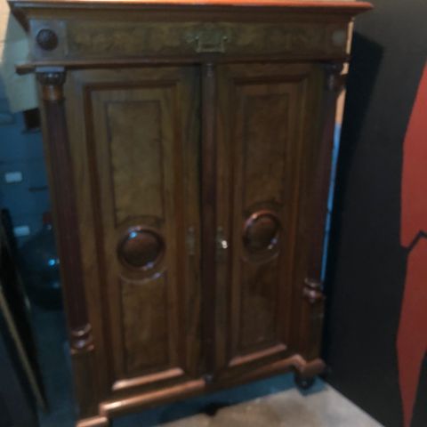 Skabet er brugt, men i pæn stand og fuldt funktionelt. Der er lidt overfladiske brugsspor, men intet der påvirker anvendelsen.
