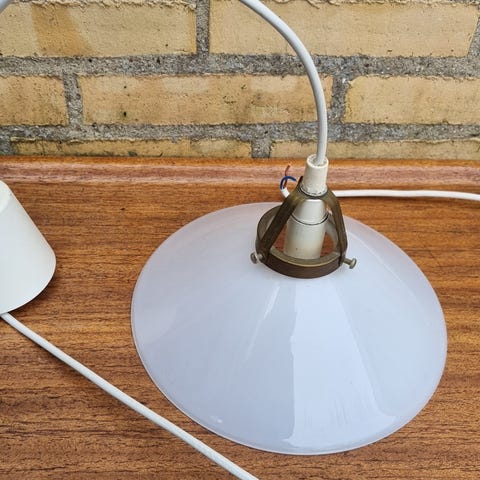 Klassisk skomagerlampe i opalglas, der giver et blødt og behageligt lys. Perfekt til at skabe ro og stemning over spisebordet, i køkkenet eller som hyggelig belysning i stuen. Det enkle, tidløse design passer smukt ind i både moderne og mere klassiske indretninger.