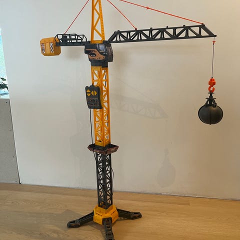 Kabelstyret tårnkran. 100 funktionsdygtig. Kan dreje rundt. Og køre op og ned. Lyset på toppen virker. Inkl. batterier. Kan pilles ned i sektioner når den ikke bruges. CE godkendt. Fra røgfrit hjem. Fast pris