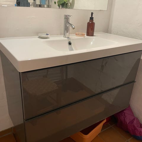 Brugt, men fungerer fint. Der er en plet i bunden af den ene skuffe, som let kan overmales.