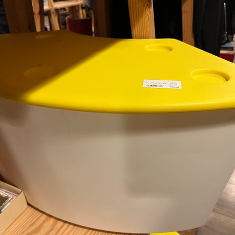 Fin bænk / bord med stor skuffe under til legetøj. Rigtig god. Bilbanen er klistermærker, som kan tages af :-)