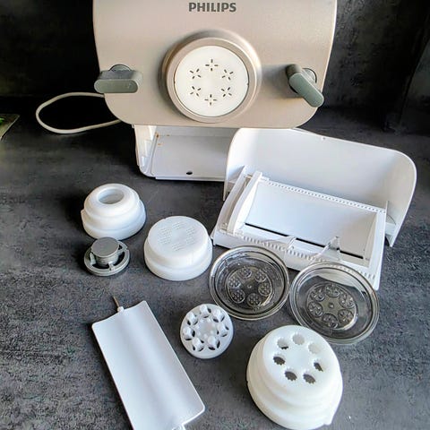 Med den elektroniske pastamaskine fra Timm Vladimir Kitchen kan du hurtigt og nemt lave lækker frisk pasta. Pastamaskinen har et enkelt design, som gør den nem at betjene og giver dig mulighed for at lave op til 350 gram pasta ad gangen i 10 forskellige former.