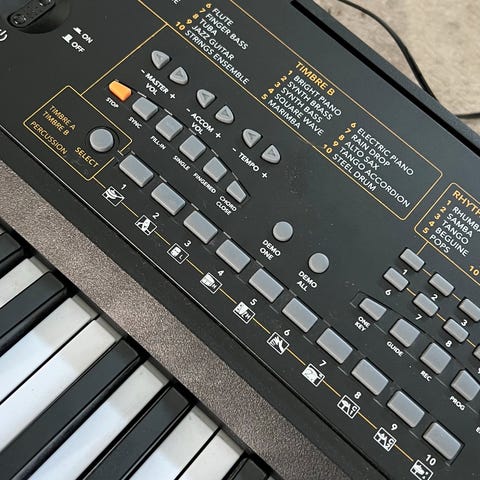Keyboard :-) . Inkluderer mikrofon, hovedtelefoner og strømforsyning. Keyboardet er velegnet til musikøvelser og begynderspil.