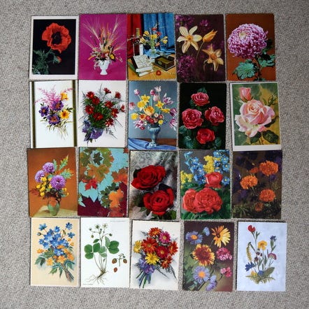 20. Postkort med Blomster motiv. 10,00 kr.
