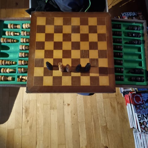 Skakbræt i træ med brikker