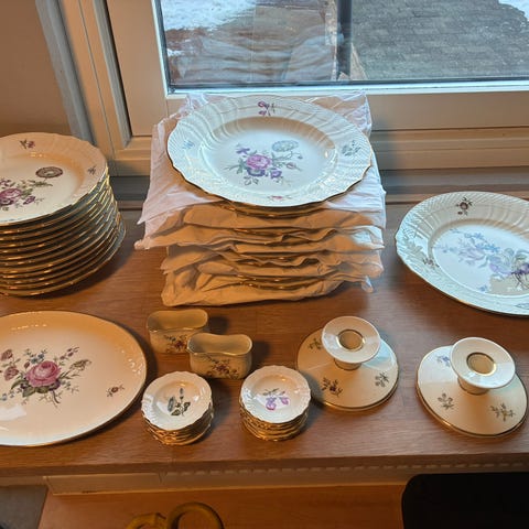Reserveret til lørdag den 17. jan 26. Royal Copenhagen Frijsenborg porcelæn kaffestel med detaljeret blomsterdekor. 1 Kaffekande, 12 par kopper, 12 kagetallerkner, 2 kagefade, sukkersåpl og flødekande. Sælges samlet. Afhentes i Hvidovre