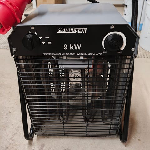 Wexim varmeblæser med en effekt på 9 kW. Enheden har en rød farve og er udstyret med et 1,6 meter kabel (5G1,5 mm²). Varmeblæseren er designet til 400V 3-faset strømforsyning. Helt ny aldrig åbnet. Fejlkøb da jeg ikke har 400v.