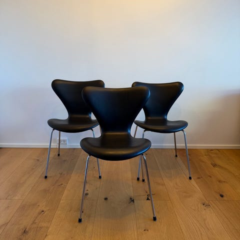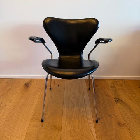 Flot 7er med armlæn polstrede i sort læder med fast ryg