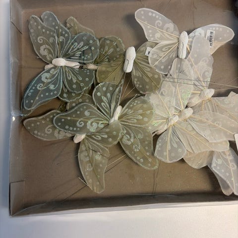 Sommerfugle der kan sættes oveni hinanden (3D effekt) eller sidde alene. Kan længes på guirlande eller klisters på væg, havelåge eller andet. Vingerne kan bøjes så det ser ud til de flyver. Jeg mener der er 22 sommerfugle totalt. Sælges samlet. Helt nye og aldrig brugt. Perfekt til bryllup, konfirmation, fødselsdag eller andet fest eller dekoration på værelset.