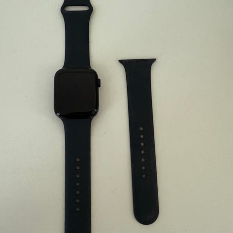 Sælger mit Apple Watch SE 3 (2025), GPS, 44 mm i farven Midnight Aluminium med Midnight Sport Band (str. M/L).