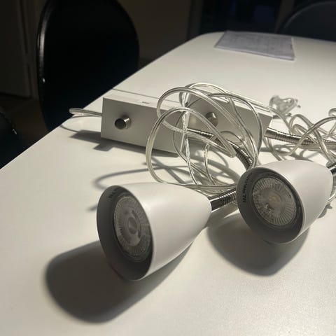 Sengelampe, Markslöjd, Sengelampe, der kun har været brugt i kort tid. Der er afbryder på lampen.