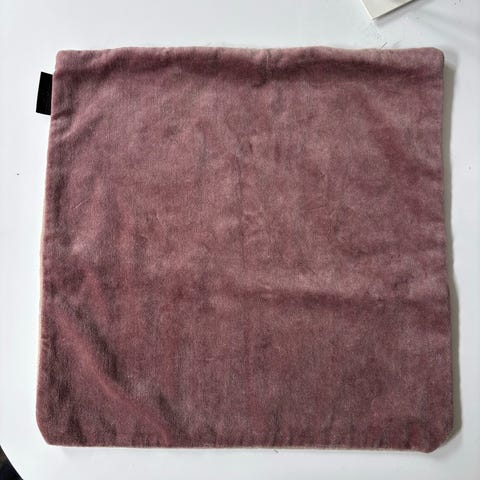 Stoffet kan ændre look ved at stryge hånden den ene eller anden vej. Derfor lidt uens nuancer på billeder. Det ene betræk har et lille område på bagside med 3 små utydelige steger i.