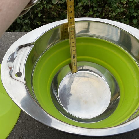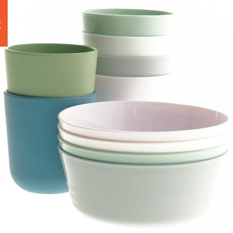 Plastbeholder/ gryde og Kop med låg og gaffel