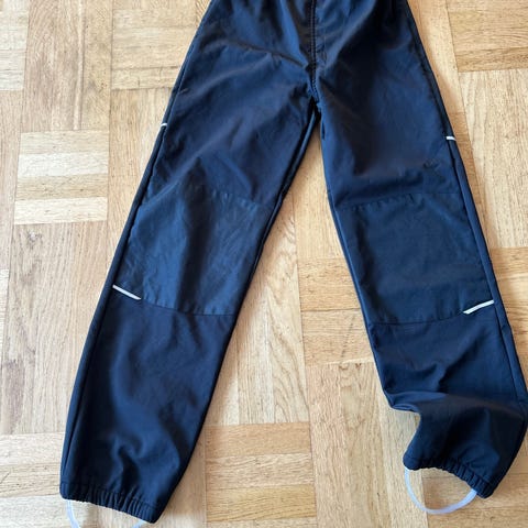 Mørkeblå softshell overtræksbukser. Har aldrig været brugt. Fodstropper kan justeres eller tages helt af. Kan spændes ind i taljen