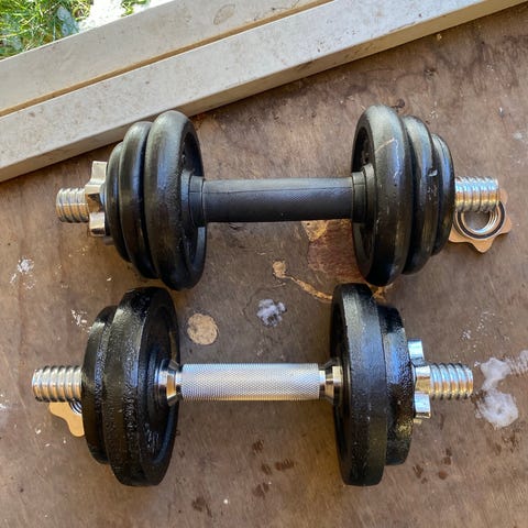 Hver håndvægt har i alt 9kg.