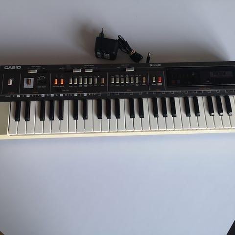 Casio Casiotone 1000P vintage keyboard/synth i brugt, fungerende stand. 61 tangenter (5 oktaver), 8‑tones polyfoni, 10 presets + op til 1000 programmerbare lyde, arpeggiator og effekter som vibrato og sustain. Klassisk 80’er‑instrument med retro analog/PCM‑lyd