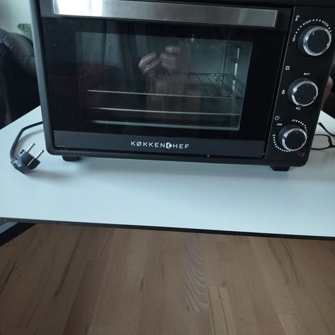 Elektrisk bordovn med keramisk kogeplade med to kogeplader. Ovnen har en ovnrist og en bageplade i metal. Velegnet til madlavning og bagning i mindre køkkener eller som ekstra ovn.