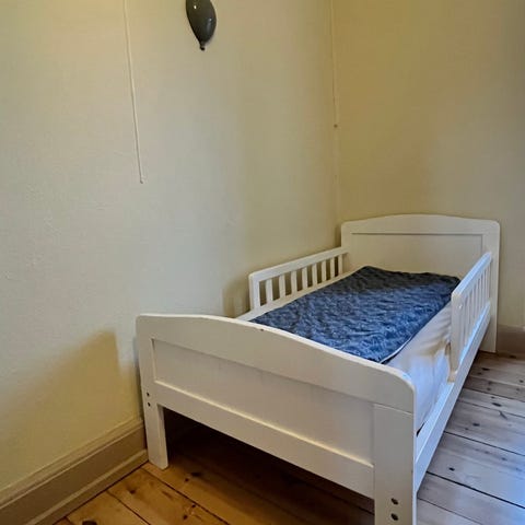 Stort set ubrugt juniorseng med kvalitetsmadras fra Dr. Lübbe.