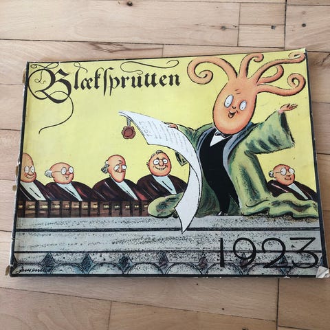 Blæksprutten fra 1933. indeholder illustrationer med forskellige figurer og scener. Materiale og størrelse er ikke angivet.