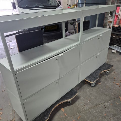 Uden bordplade sælges reolerne til 4.500 kr. inkl. beslag til bordplade.