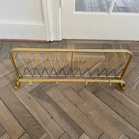 Patineret messing hattehylde fra 1960'erne (80cm lang)
