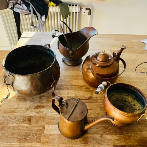 Smuk lille buket af mistelten i kobber med begyndende ir.