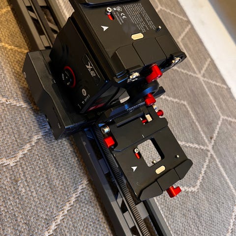 - Stealth Slider L1000 mm (med taske) med Second Shooter Pan/Tilt head og Focus pull motor. Styrepult og 2 batterier. Komplet med lader kabler og alt tilbehør. Evt taske til tilbehør + 300 kr. Nypris ca 15.000. Virker perfekt. Til professionel video optagelse.