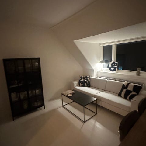 Sofaen skal afhentes på 4. sal i KBH. Opgangen er heldigvis meget bred, så det er ikke svært at bære den ned. Den er ikke tung for to personer.