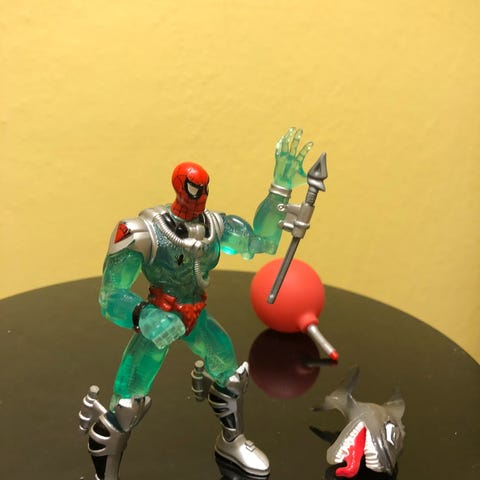 Denne web shooter skyder en lang snor ud med enten en magnet eller en sugekop i enden. Web shooteren kan selv suge snoren tilbage igen ved at du holder en knap nede bagerst på skyderen.