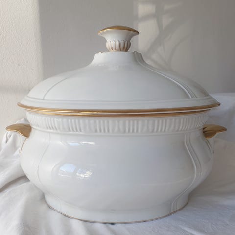 Suppeterrin med undertallerken/fad af Saksisk Blomst fra Bing og Grøndahl.