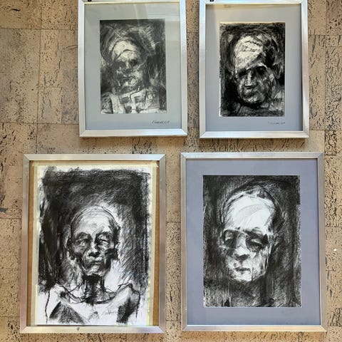To stk kulmalerier af kunstneren Evija Sliksane. Billederne måler 64 x 45 cm. Sælges samlet. Da de er tegnet med kul er der brugsspor, dog minimale.