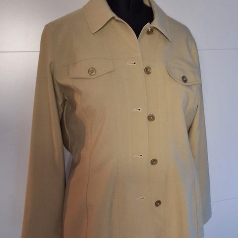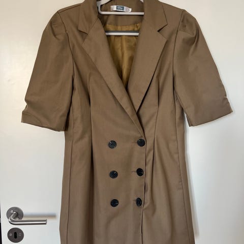Jakkesæt med en lille trompetbuks. Str. M og brugt til en på 173 cm. Går ikke helt ned til jorden.